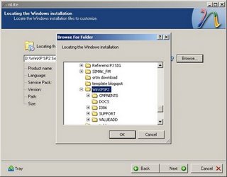 2. Klik Tombol "Next", kemudian Klik Browse, arahkan ke direktori yang berisi file windows installer ( D:WinXPSP2) Klik OK.